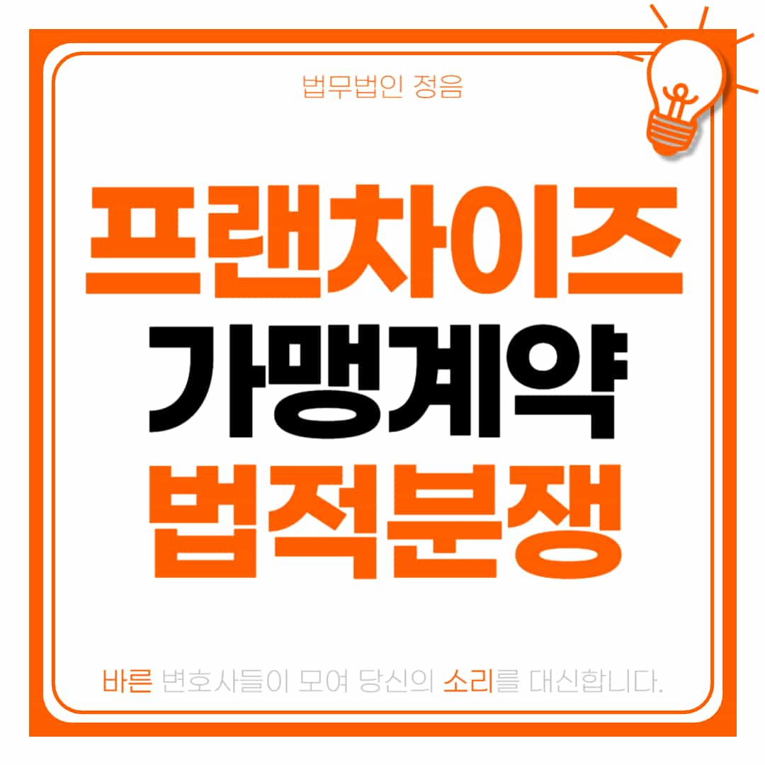 프랜차이즈 본사의 허위·과장 정보 제공으로 막대한 금전적, 정신적 피해를 입고 계시다면 지체 없이 법률 상담을 받아보시기 바랍니다. 법무법인 정음 변호사 법률상담이 여러분의 정당한 권리를 찾기 위해 함께하겠습니다.
